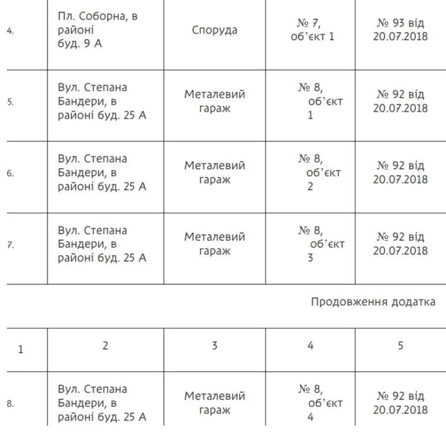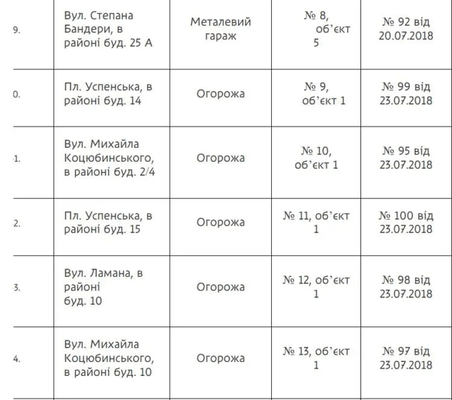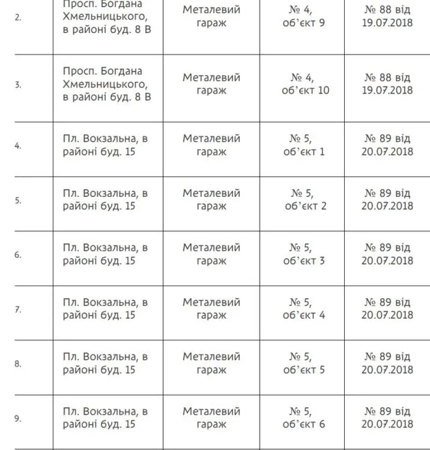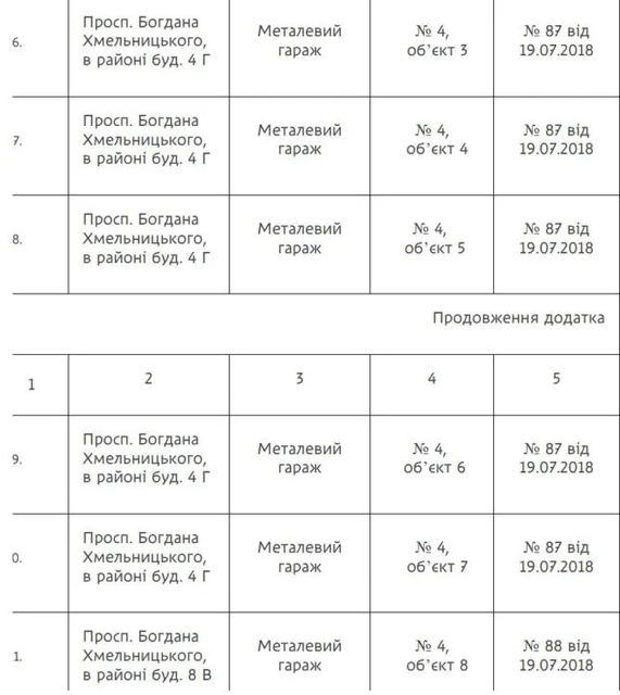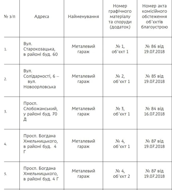 В частности, в списке фигурируют металлические гаражи, установленные без соответствующих разрешительных документов. Часть таких объектов находится в районе проспекта Богдана Хмельницкого, вблизи жилых домов.