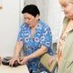 Одной из более важных услуг терцентра является «уход на дому». Это позволяет поддерживать лиц постарше и людей с инвалидностью. Татьяна Кищенко переехала в Днепр из Курахово. Имея инвалидность второй группы, женщина физически не может самостоятельно заботиться о своей 92-летней маме, недавно перенесшей инсульт. Опорой для них стала социальная работница Анаид Погосова, которая посещает семью почти каждый день.