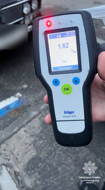 В Новокодакском районе патрульные остановили водителя автомобиля Mercedes Benz. У него были признаки алкогольного опьянения. Водитель прошел освидетельствование на месте с помощью Драгера. Результат - 1,82 промилле алкоголя. На него составили протокол по ч.1 ст.130 (Управление в состоянии опьянения) КУоАП.