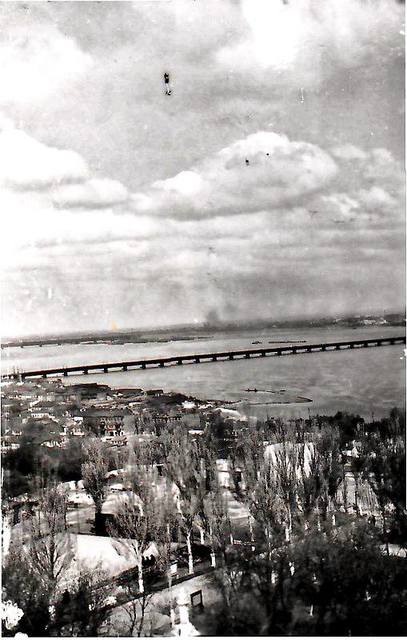 Після звільнення нашого міста дерев'яний міст було збудовано як заміну Амурському та Мерефо-Херсонському мостам, які були зруйновані гітлерівськими окупантами.