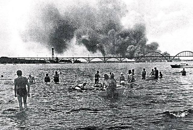 Правда, делать это нужно было с осторожностью: в середине моста зияли дыры, а деревянные балки шатались. Но люди ещё продолжили, на свой страх и риск, переходить реку Днепр по аварийному мосту.