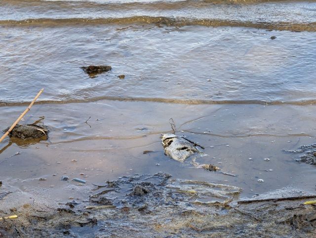 У Дніпрі неподалік від пішохідного містка на косі Перемоги знову зафіксували загибель тварин. На березі річки можна побачити мертву рибу, а також нутрію.