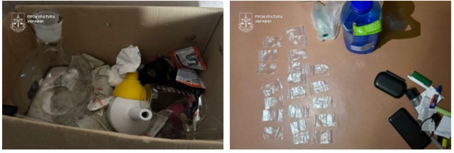 Під час санкціонованих обшуків за місцями проживання вилучено близько 140 сліп-пакетів із метамфетаміном, психотропні та наркотичні засоби, пластикові ємності з прекурсорами, спеціальне обладнання для виготовлення наркотиків, банківські картки, мобільні телефони, документацію, чорнові записи, гроші та автомобілі.
