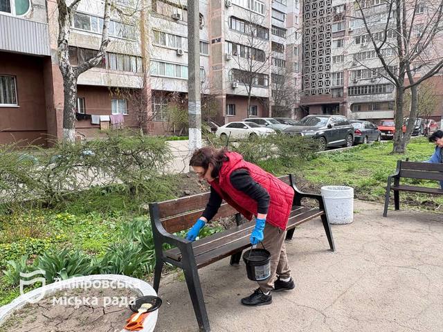 Жители дома на ул. Новокрымской вместе с сотрудниками КП "Городская инфраструктура" тоже организовали весеннюю толоку в сквере Янгеля. Все вместе там убрали мусор, привели в порядок клумбы, провели формовочную обрезку деревьев и кустов. А еще покрасили лавки и посадили бархатцы.