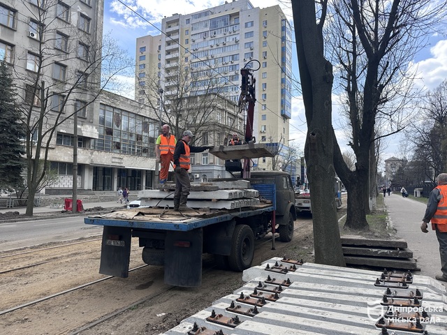 «Проводимо капітальний ремонт колії на перетині проспекту Науки та вулиці Паторжинського. Виконуємо заміну рейок і шпал, укладаємо залізобетонні плити. Працюємо за класичною схемою на бетонних шпалах мостового типу. Це дозволить зробити переїзд більш надійним і зручним як для трамваїв, так і для автомобілів», — зазначив майстер ремонтно-будівельного управління КП «Дніпровський електротранспорт» Сергій Ситник.