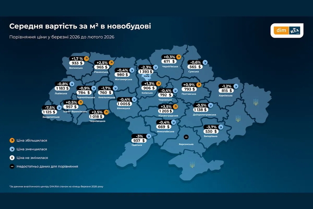 По данным маркетплейса недвижимости DIM.RIA, количество заинтересованных покупателей в регионе увеличилось на 25% по сравнению с февралем. Средняя стоимость за квадратный метр в новостройке составляет 1 138 долларов. В то же время на вторичном рынке жилья фиксируют незначительный рост цен.