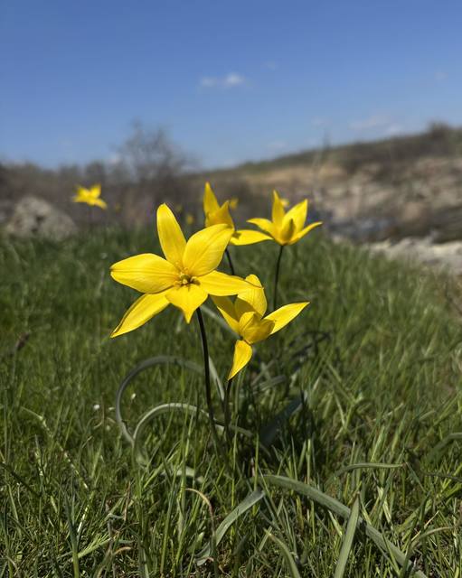 Дикорослий тюльпан з витонченими гострими пелюстками жовтого кольору.