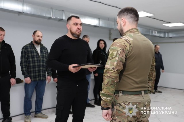 Відзнаки воїнам, які захищають державу на передовій, вручив т.в.о. начальника ГУНП в Дніпропетровській області Олександр Миргородський. Також до нагородження долучився начальник Департаменту «КОРД» Нацполіції України Микола Путій.