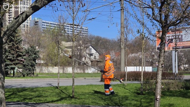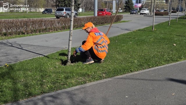 В зеленых зонах Днепра продолжается весенняя уборка. Сейчас активные работы проводят на Набережной Победы. Здесь работают девять специалистов на всей протяженности локации.