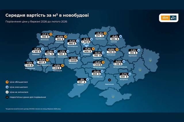 При этом цена на недвижимость в марте снизилась – правда, всего лишь на мизерные 0,5 процента. И сейчас стоимость квадратного метра в новостройках Днепропетровщины составляет 1138 долларов.