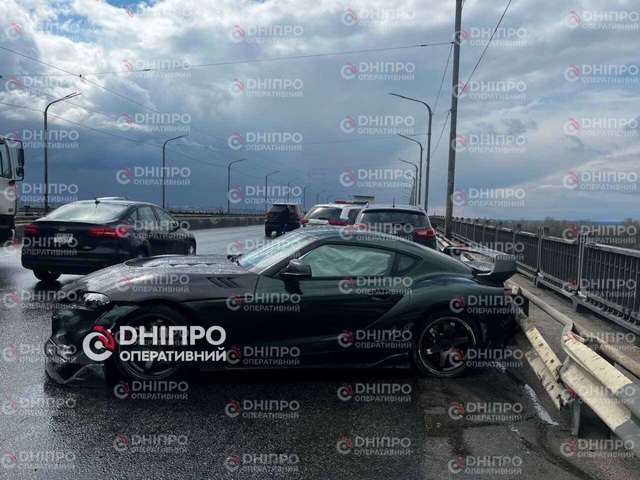 У Дніпрі на Кайдацькому мосту сталася серйозна дорожньо-транспортна пригода за участю автомобіля Toyota Supra та BMW.