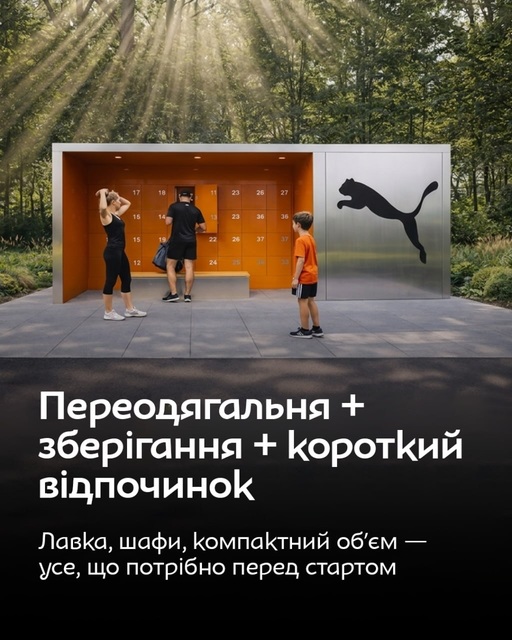 Разом з VKA Public Architecture Studio ми переосмислили формат міських переодягалень — як частину щоденного руху, а не окремий обʼєкт. Це про можливість не відкладати активність на потім, а інтегрувати її у свій день.
