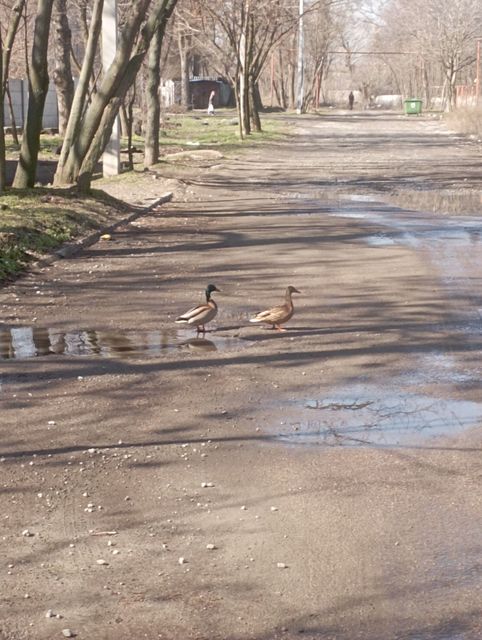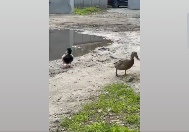 В комментариях жители района пишут, что уже около недели замечают эту пару на своем массиве. Иногда утки гуляют на прилегающей территории.