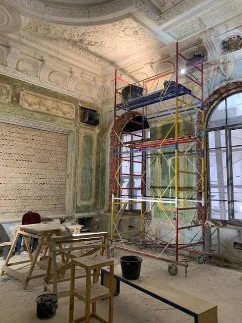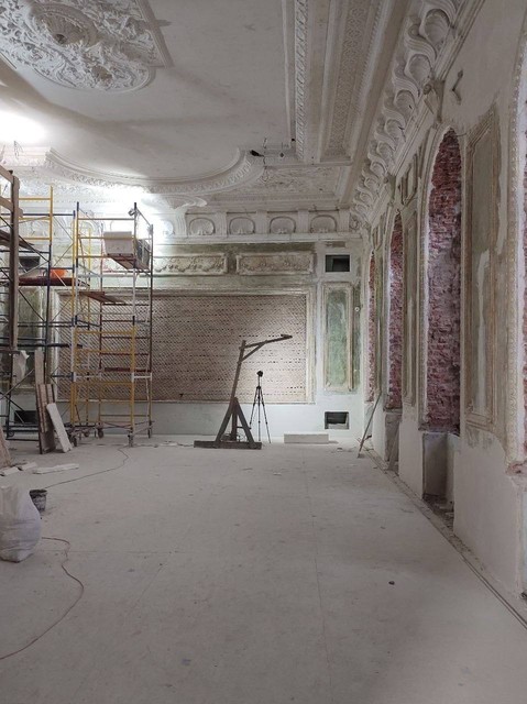 Здание со знаменитой историей (о которой подробно писал Городской сайт) дошло до нашего времени в плачевном состоянии. Еще до полномасштабной войны началась его реставрация.