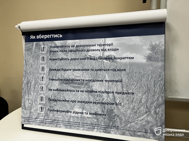 «Если говорим и о пожарах, и о других опасностях, самое важное, чтобы люди знали базовые правила. Например, при обнаружении подозрительного предмета — не подходить, не трогать и сразу сообщить службам 101 или 112. В нынешних условиях такие знания критически важны», — отметил офицер-спасатель Днепра Виталий Малый.