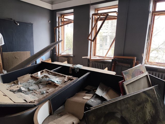 Каждый из них причинил этому учреждению значительные повреждения. В частности, после вчерашнего обстрела в музее снова вылетели практически все стекла окон. Они были установлены совсем недавно, после предыдущей атаки врага…