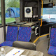 Автобус підʼєднується до генератора, тут є безперебійне живлення, інтернет, мінікухня, місця для роботи з документами та відпочинку.