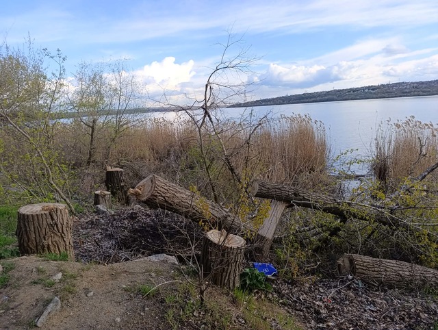 И вот теперь были уничтожены деревья в живописном месте Приднепровска, на пляжной зоне у берега реки Днепр.