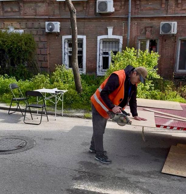 В департаменте парков сообщили, что коммунальщики с самого утра убирают последствия падения обломков БПЛА в Севастопольском парке.