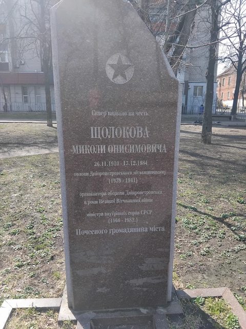 «Ініціював демонтаж меморіальної стели М. Щолокову у сквері Святого Юрія Переможця.