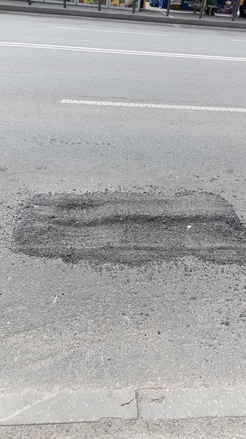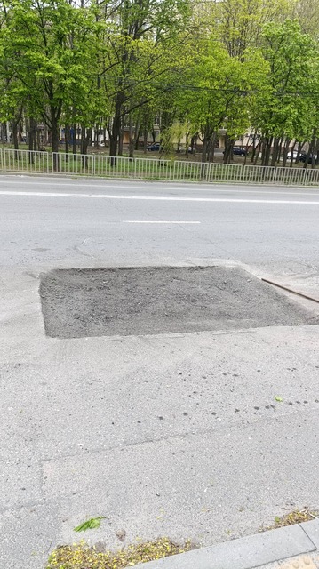 Замість асфальту на доволі завантаженій магістралі одного з найбільших житлових масивів міста хтось геніальний з Дніпровської міської ради вирішив використати звичайний будівельний бруд (шлак/зріз).