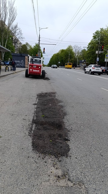 Всі ці каміння відразу після диво ремонту розлітаються по проїзній частині та, вилітая з під коліс, потраплять в лобове скло та кузова авто створюючи небезпечну ситуацію на дорозі та загрожують безпеці руху.