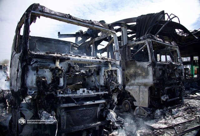 Знищені 8 вантажівок і 4 легковики.