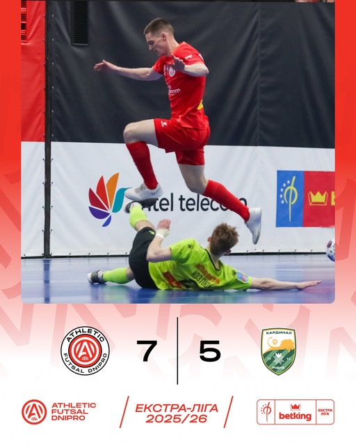 Підсумок матчу: Athletic Futsal 7:5 Кардинал-Авангард”.