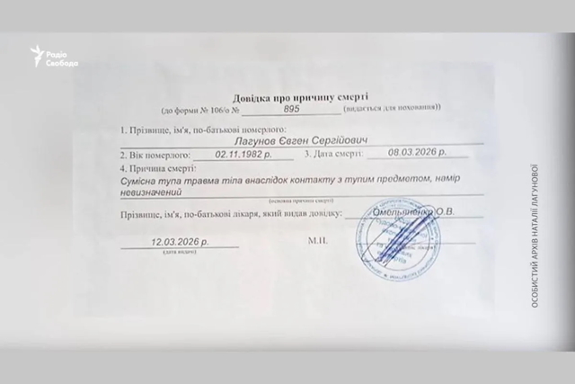 43-летний архитектор из Днепра Евгений Лагунов скончался спустя шесть дней после мобилизации. Предварительно 2 марта его задержали представители ТЦК. В тот же день он прошел военно-врачебную комиссию (ВВК), признавшую его годным к службе в тылу. В последний раз с ним связывались по дороге на службу, а уже через несколько часов он оказался в больнице с тяжелыми травмами и в коме.