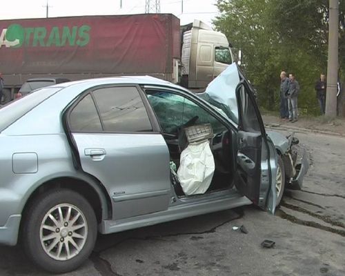 Вчера, около 16.00 на Набережной Заводской возле Кайдакского моста произошло крупное ДТП. По неустановленной пока причине крупнотоннажный грузовик с прицепом Вольво выехал на встречную полосу, где на большой скорости двигался автомобиль Мицубиси Галант.