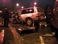 Після зіткнення водій автомобіля “БМВ”, втративши керування, виїхав на смугу зустрічного руху, де зіткнувся з автомобілем “Тойота-Ленд-Крузер”. В свою чергу “Тойота” зіткнулася з мікроавтобусом “Форд-Транзит”, що рухався позаду в попутному напрямку.