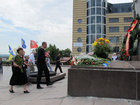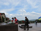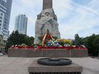 22 июня аллея, ведущая к монументу практически пустая. У памятника тоже народу почти нет. Только группа нарядно одетых студентов что-то отмечают, поднимая бокалы с шампанским.