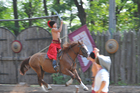 А какая же Хортица без казаков-то? Ведь одно без второго просто быть не может! Убедиться в этом нашим путешественникам помогло представление конного театра, которое ребята увидели, когда гостили на казацком хуторе. Заправские наездники поразили всех своим мастерством и удалью. Ребята смотрели во все глаза на то, как лихие всадники на полном ходу копьем сбивали с сабли шапку, а потом поднимали ее с земли рукой. Такие боевые упражнения в старину позволяли воинам спасти в бою свою жизнь, уклониться от вражьей стрелы и подобрать упавшее на землю оружие.