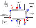 Несмотря на обновление дорожных знаков, теперь водители могут попасть в необычную ситуацию, которая может приводить к заторам на данном оживленном перекрестке. Виной всему отсутствующий знак главной дороги, который, видимо, забыли установить на пр. Маршала Жукова при приближении к перекрестку со стороны кинотеатра Мир. В тоже время при движении по пр. Маршала Жукова со стороны церкви, знак “Главная дорога” присутствует.
