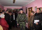 В отдельном Новороссийско-Киевском полку Президента Украины делегацию встретил временно исполняющий обязанности заместителя командира части по воспитательной работе капитан Виктор Дзядзин.