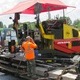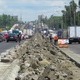 Качеством асфальта мастер доволен. Но мешает транспорт, говорит он. Из-за того, что проспект нельзя перекрыть полностью, может пострадать качество новенького асфальта.