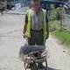 По противоположной стороне улицы другая бригада занимается бордюрами.
