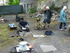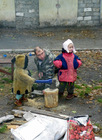 Люди греются у костров во дворе, там же готовят пищу. "Ребенок не хочет возвращаться из школы домой - в школе теплее", - говорит одна из жильцов.