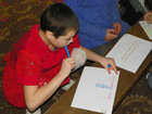 Перед вручением подарков, детям раздали альбомные листы и фломастеры. Им предложили написать, или нарисовать свои пожелания на Новый Год. Одна девочка, в качестве подарка под елочку, пожелала мобильный телефон…и счастья.