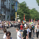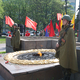 Празднование началось с возложения цветов к братской могиле советских солдат в селе Карнауховка. В 10:00 началось главное мероприятие празднования Дня Победы – парадное шествие ветеранов. По традиции, они, в сопровождении оркестра и представителей городских властей, прошли через живой коридор по улице Сыровца от площади Дзержинского к площади Ленина. После чего ветераны возложили цветы к памятникам Прометею и бойцам истребительного батальона, а также к Стелле освободителей.