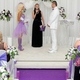 Стиль оформления торжества (впрочем как и дресс-код для гостей) был в любимой цветовой гамме невесты – сиреневой, а итальянская музыка и шампанское лились рекой. Свидетели шли по залу в зажигательном танце а за ними невеста в сногсшибательном свадебном мини с букетом из цветов, ручного плетения. Кстати букет свидетельницы тоже выделялся оригинальностью – он был составлен из мягких кошечек Kitty, обожаемого аксессуара невесты, который присутствовал во всех свадебных аксессуарах.