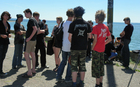 Пока почитатели памяти Цоя собирались, здоровались между собой, к ним подошел уже пожилой человек, который представился Владимиром. Он рассказал ребятам, что был в Санкт-Петербурге в день похорон Виктора Цоя - 15 августа.