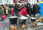 Возле музыкально-драматического театра им. Леси Украинки были установлены шатры, в которых желающие могут угоститься блинами, чаем и кулешом. Горожан развлекали городские музыкальные коллективы, а также гости из Вольногорска.