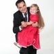 А актер Михаил Мельник радуется, что познакомился с солнечной девочкой Дашей. На фото он держит на коленях маленькую девочку в воздушном платье.