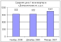За ноябрь 2006-январь 2007 гг. средняя цена 1м2 квартир больше всего (в среднем на 108 у.д.е.) возросла в следующих зонах: Левобережный-3, Кирова середина, Победа 1-4, Нагорный. В группу среднего роста цен попали зоны, в которых средний рост цены 1м2 квартир составил 55 у.д.е.: Кирова (верх, середина), Титова, пр..Правды, Центр, Рабочая (середина, низ), 12 квартал, Клочко, Кр.Камень, Гагарина, Петровского, Тополь, Западный, Г.Сталинграда, Победа 5-6, Фрунзенский, Приднепровский, Коммунар.