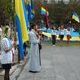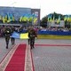 На площади Ленина парад задержался у установленного рано утром за постаментом памятника Ленину мемориального камня "Герои не умирают". Камень был освящен по христианскому обряду, при этом помянули погибших за Украину.