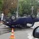 От удара «Жигули» занесло и автомобиль опрокинулся на крышу.