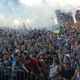 А красивым и патриотичным финальным аккордом церемонии стало коллективное исполнение игроками и болельщиками гимна Украины, знаменитой песни «Воины света» (с которой начинается каждый матч на «Днепр-Арене») и импровизированное фаер-шоу, для которого Роман Зозуля, Андрей Федецкий, Денис Бойко спустились со сцены в толпу фанатов…
