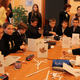 В рамках проекта «Путешествуем по залам крупнейших библиотек Украины» 25 сентября в юношеском отделе Центральной библиотеки имени Т.Г. Шевченко прошла встреча по скайпу с Национальной библиотекой Украины для детей (г. Киев). Библиотекари Национальной библиотеки рассказали о своем учреждении учащимся коллегиума № 16 и провели для них мастер-класс по работе в технике айрис фолдинг.