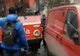 Владелец красного фургона volkswagen бросил свою колесницу вдоль трамвайных рельс, перекрыв дорогу электротранспорту.